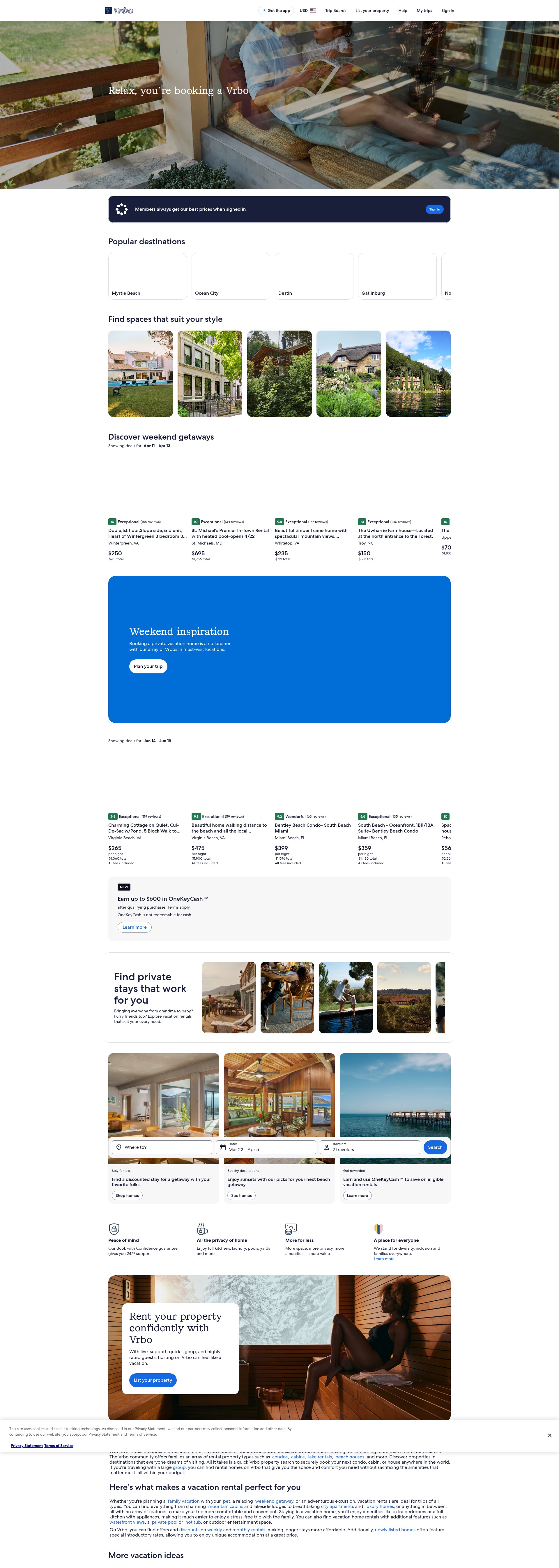 Vrbo is a platform for booking vacation home rentals, offering a variety of properties such as beach houses, cabins, and condos.